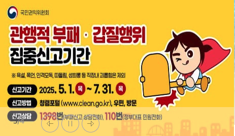 | 민원 신청 | 민원 접수 및 확인, 부패·공익 신고 가능 |