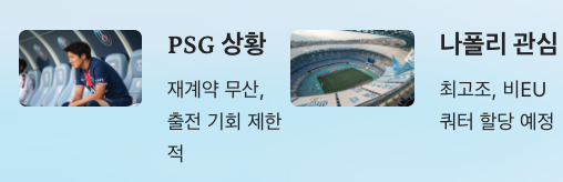 - 비EU 쿼터까지 확보 시도 → 이강인 중용 의지 강력