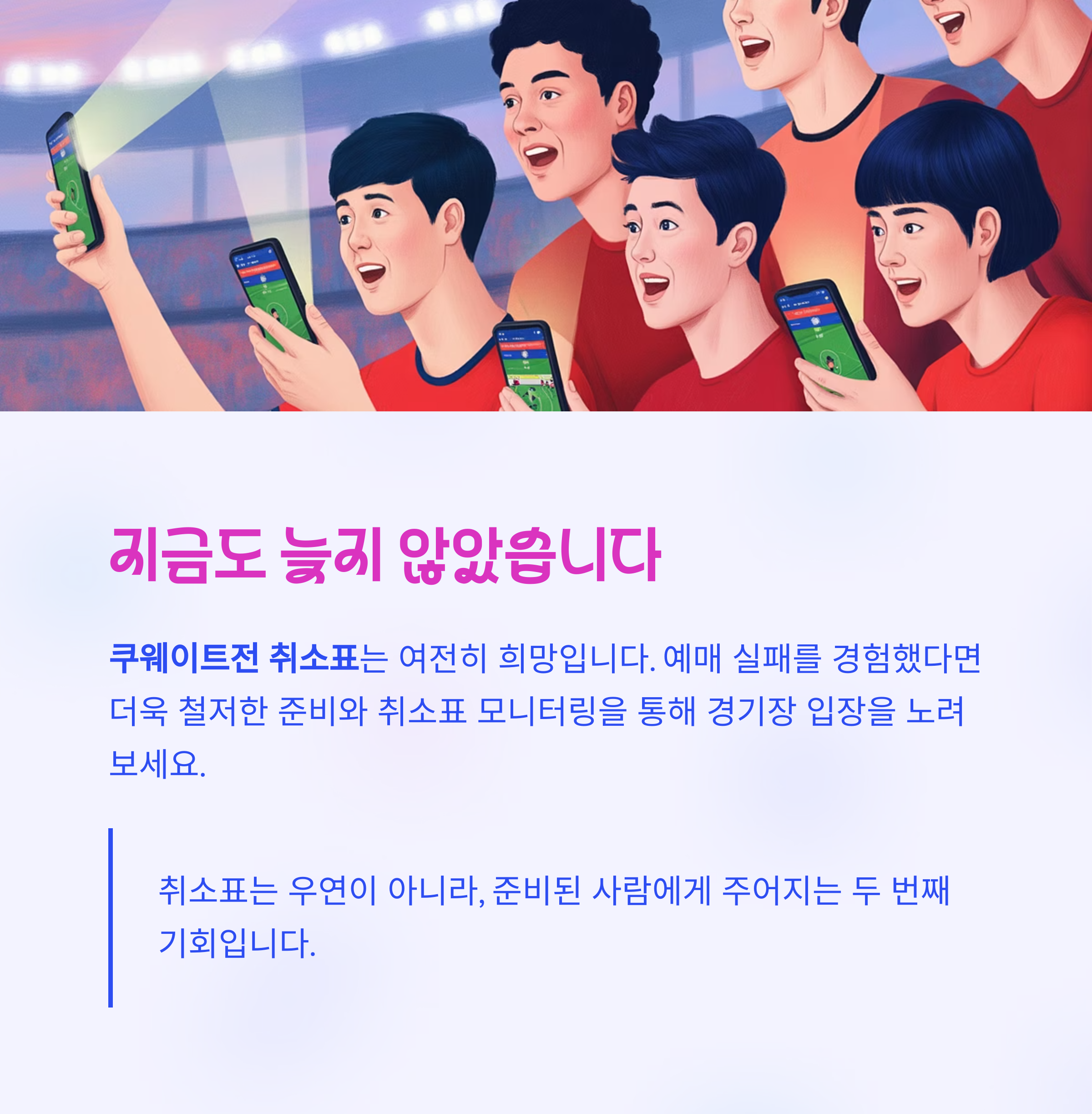 쿠웨이트전 취소표 예매를 위한 실전 팁