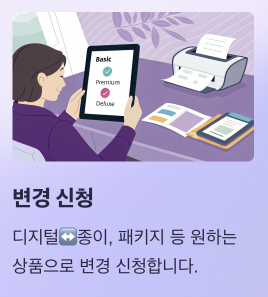 - 디지털/종이/패키지 선택 후 신청서 작성