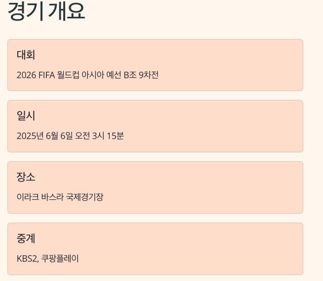 2025년 6월 6일 새벽 3시 15분, 바스라 국제 경기장에서 한국 이라크 축구 역사의 또 하나의 페이지가 쓰여집니다. 2026 북중미 월드컵 아시아 최종 예선 B조 9차전. 한국 축구대표팀은 한국 이라크 축구 매치에서 단 1점의 승점만 얻어도 11회 연속 본선 진출을 확정지을 수 있습니다.