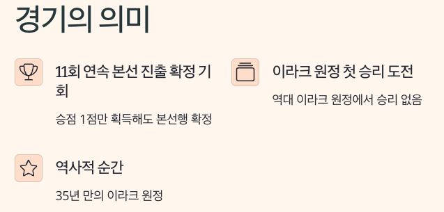 한국 이라크 축구의 이 경기는 단지 한 경기 이상의 의미를 가집니다.