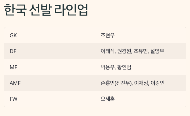 한국 이라크 축구 라인업을 예상해보면 다음과 같습니다.